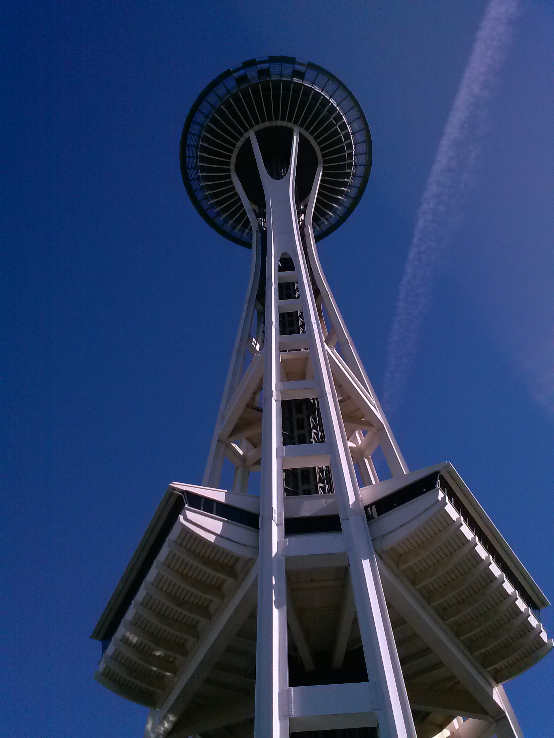 coffee in the food court. I must note not once did I patron that big name coffee giant that got its start in Seattle but instead opted to support the smaller companies. I took my coffee outside and gazed upon the 600ft structure while taking pictures in all directions with the sun, without the sun, from a distance, up close, you name it. I even have a picture of a maintenance man mopping the cement.